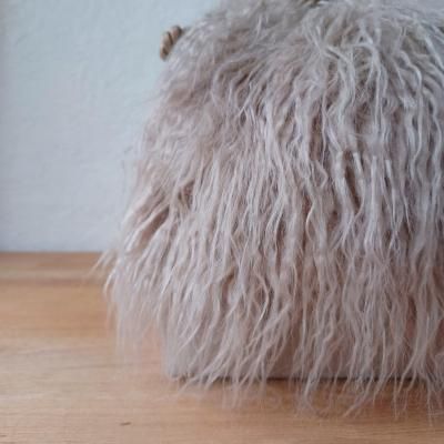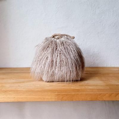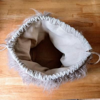 全面フェイクファーだと重すぎてしまうところ、適度に切り替えが入ることでスッキリとした表情の巾着に仕上がりました。
