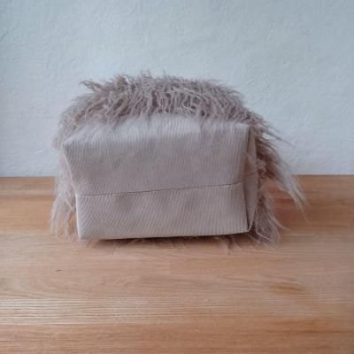 表布:フェイクファー/アクリル100% コーデュロイ/綿100% 裏布:綿、ポリエステル混合 芯材:合成繊維 紐:ワックスコード